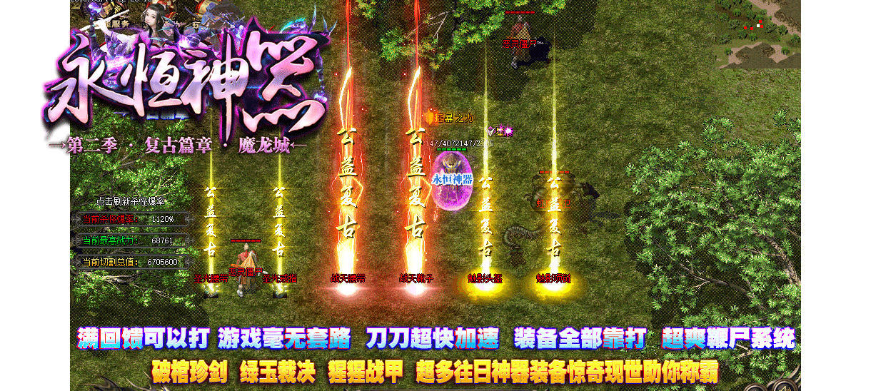 本游戏地图多、BOSS多.怪物多、爆率高、散人双倍回收。不花钱一样叼