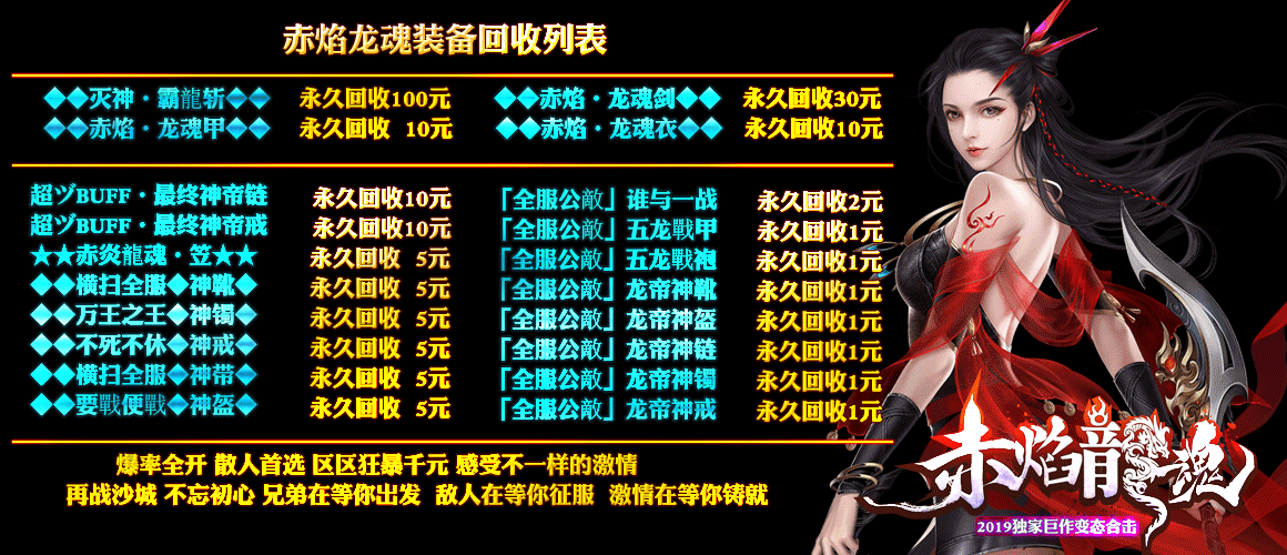 -------------------------★★★★★★★★【赤焰龙魂变态合击武器介绍】★★★★★★★★------------------------- 战火重燃≮新手≯神剑----佩戴触发 50倍神力 逆天而行≮⒍阶≯神剑----佩戴触发 100倍神力 龍神星辰≮⒎阶≯神剑----佩戴触发 150倍神力 弑血傲天≮⒏阶≯神剑----佩戴触发 200倍神力 剑舞轻尘≮⒐阶≯神剑----佩戴触发 300倍神力 毁滅天地≮⒑阶≯神剑----佩戴触发 400倍神力 武圣破军≮⒒阶≯神剑----佩戴触发 500倍神力 兲之裂痕≮⒓阶≯神剑----佩戴触发 600倍神力 聖火天罚≮⒔阶≯神剑----佩戴触发 700倍神力 紫霄龙呤≮⒕阶≯神剑----佩戴触发 800倍神力 帝魂神尊≮⒖阶≯神剑----佩戴触发 900倍神力 滅世神罰≮⒗阶≯神剑----佩戴触发 1000倍神力 鸿钧破天≮⒘阶≯神剑----佩戴触发 1180倍神力 魔帝邪尊≮⒙阶≯神剑----佩戴触发 1280倍神力 圣裁万劫≮⒚阶≯神剑----佩戴触发 1380倍神力 寂灭天骄≮⒛阶≯神剑----佩戴触发 1480倍神力 界·天帝灭魂◇君王剑----佩戴触发 1580倍神力 弑·烈日屠龍◇灭神剑----佩戴触发 1780倍神力+血泊一击3级 屠·破碎血狱◇审判剑----佩戴触发 1980倍神力+血泊一击4级 怒·燃烧之血◇狂怒剑----佩戴触发 2280倍神力+血泊一击5级 「全服公敵」谁与一战----佩戴触发 2588倍神力+血泊一击8级+破复活+鉴定倚天辟地+暗夜失明BUFF -------------------------★★★★★★★★【赤焰龙魂变态合击衣服介绍】★★★★★★★★------------------------- 战火重燃≮新手≯神甲----佩戴触发 10倍神力 逆天而行≮⒍阶≯神甲----佩戴触发 20倍神力 龍神星辰≮⒎阶≯神甲----佩戴触发 30倍神力 弑血傲天≮⒏阶≯神甲----佩戴触发 40倍神力 剑舞轻尘≮⒐阶≯神甲----佩戴触发 60倍神力 毁滅天地≮⒑阶≯神甲----佩戴触发 80倍神力 武圣破军≮⒒阶≯神甲----佩戴触发 100倍神力 兲之裂痕≮⒓阶≯神甲----佩戴触发 150倍神力 聖火天罚≮⒔阶≯神甲----佩戴触发 200倍神力 紫霄龙呤≮⒕阶≯神甲----佩戴触发 250倍神力 帝魂神尊≮⒖阶≯神甲----佩戴触发 300倍神力 滅世神罰≮⒗阶≯神甲----佩戴触发 350倍神力 鸿钧破天≮⒘阶≯神甲----佩戴触发 400倍神力 魔帝邪尊≮⒙阶≯神甲----佩戴触发 550倍神力 圣裁万劫≮⒚阶≯神甲----佩戴触发 600倍神力 寂灭天骄≮⒛阶≯神甲----佩戴触发 700倍神力 界·天帝灭魂◇君王甲----佩戴触发 800倍神力 弑·烈日屠龍◇灭神甲----佩戴触发 900倍神力[超强防御]+[神秘属性]+[超级元素][每秒回血] 屠·破碎血狱◇审判甲----佩戴触发 1000倍神力[超强防御]+[神秘属性]+[超级元素][每秒回血] 怒·燃烧之血◇狂怒甲----佩戴触发 1100倍神力[超强防御]+[神秘属性]+[超级元素][每秒回血] 「全服公敵」五龙戰甲----佩戴触发 1288倍神力[防一切负面技能伤害BUUF]+[[复活]+[每秒回血]+蛛网缠绕BUFF -------------------------★★★★★★★★【赤焰龙魂变态合击介绍】★★★★★★★★------------------------- 回收时间为每天满30后请游戏NPC自主体现,19-20点提现打款 担保交易群QQ群新⑥群:1010016665 担保交易群QQ群新⑤群:1010016665 赤焰龙魂变态合击客服QQ:10100166657 |