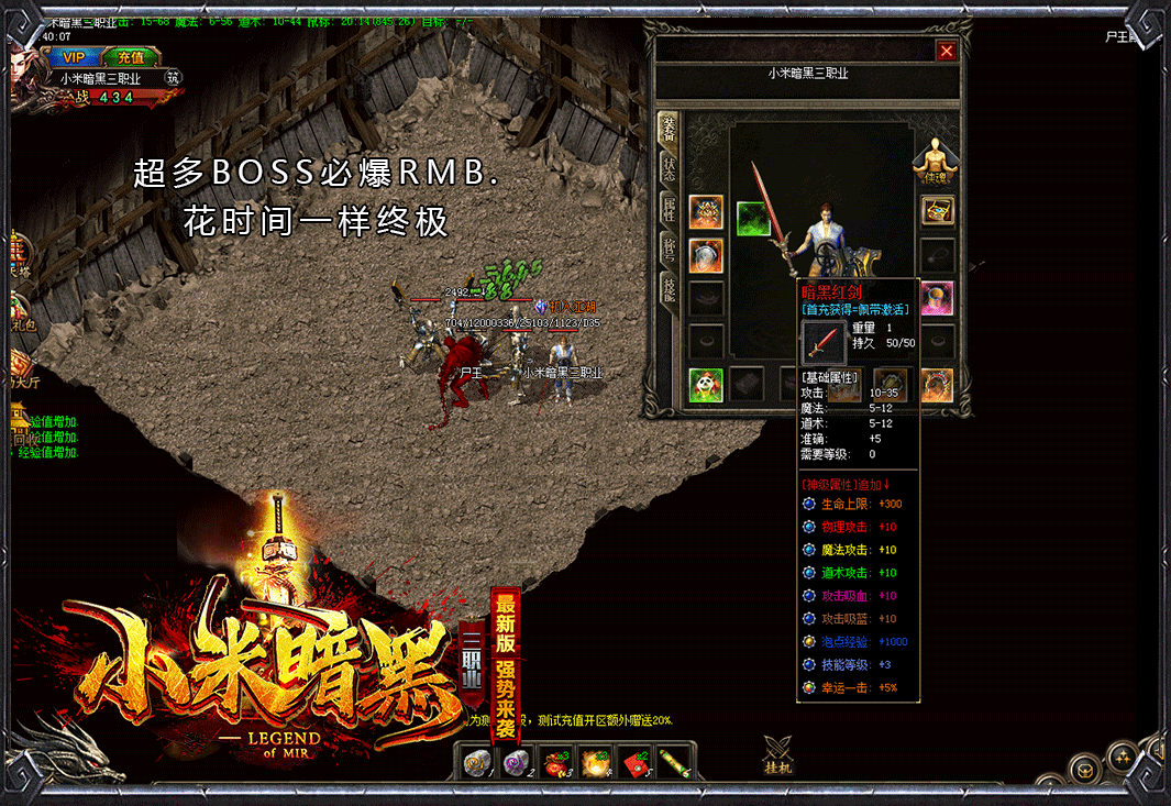 所有装备物品均由怪物直接掉落,BOSS爆终极装备,肯花时间啥都有!