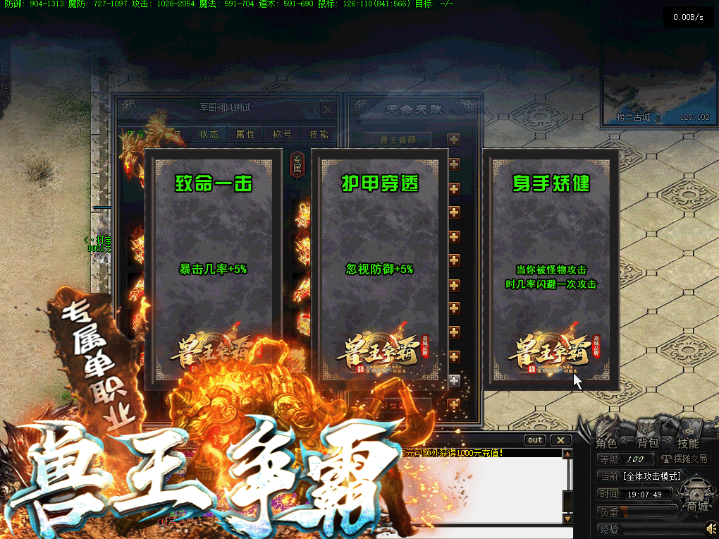 - 介绍6:特殊的天命命格套装功能,运势系统功能,让你体验不一样的传奇