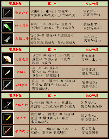 仙级装备——炎帝系列、仙级武器系列
